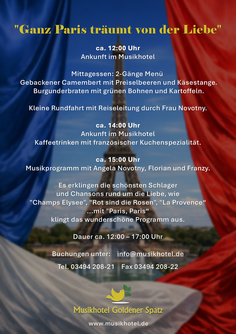 Eintritt 12,00 € (bitte Zeit und Inklusiv Leistungen optional